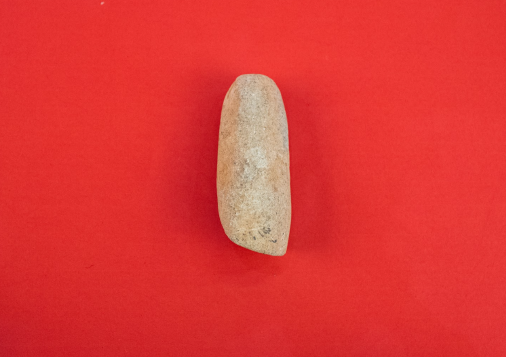 Kapak Batu Berbahan batu pasir ini mempunyai ketajaman monofacial dengan tipologis menyerupai kapak lonjong pada masa neolitikum.